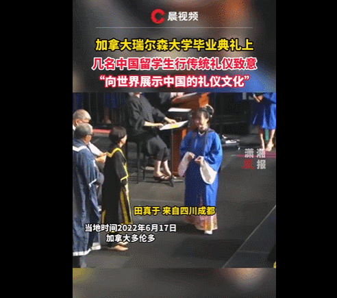 穿华服参加毕业典礼的视频
