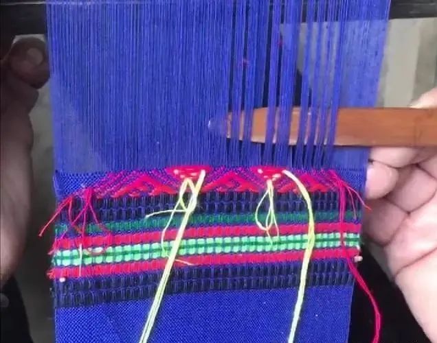 把彩线织成蓝色宽腰带