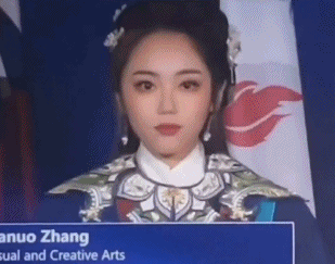 首先是一名身穿华服的女孩
